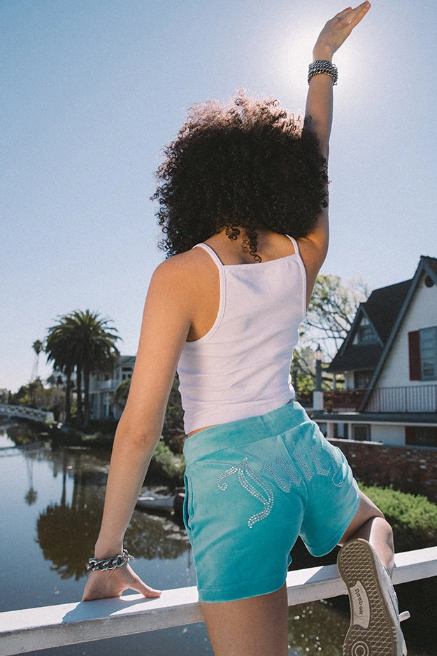 Show your best assets in our new velour shorts. Set the vibe by pairing it with your choice of jacket, tank, or bandeau.