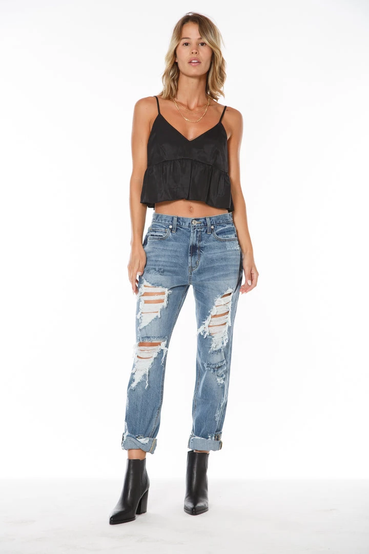 Chill out to the max in our relaxed boyfriend fit jean. Comfort stretch fabric keeps you comfortable while maintaining that authentic denim look. Your boyfriend will want to steal them!