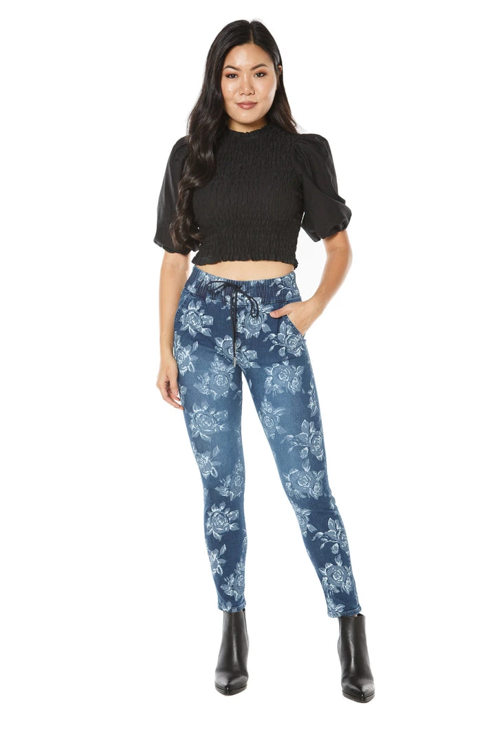Comfort and style combine in these easy pull-on slim-fitting jeans. Great for casual weekends and girls on the go! We’ve updated her with a cool floral printed denim.