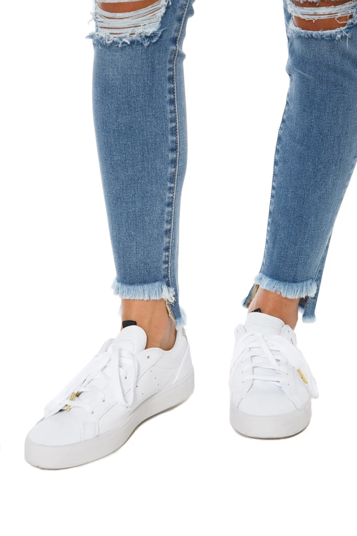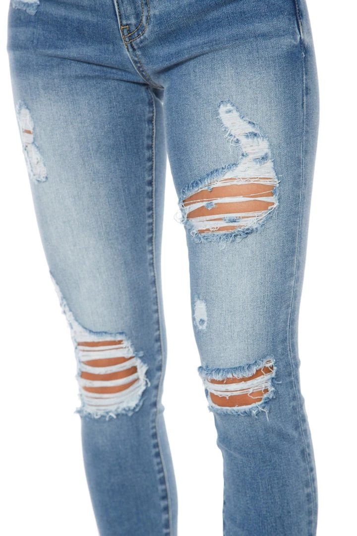 Our classic high-rise skinny fit with a cool destroy wash. Great for lounging on the weekend or long road trips since our power stretch fabric is so comfortable.