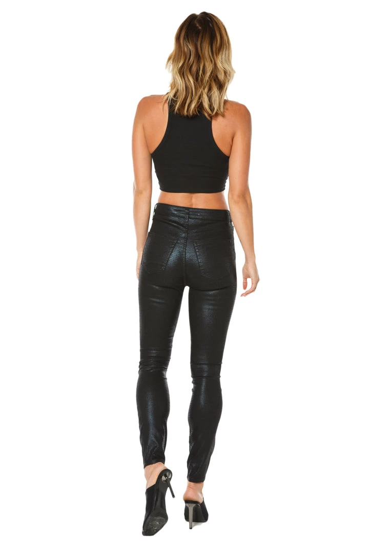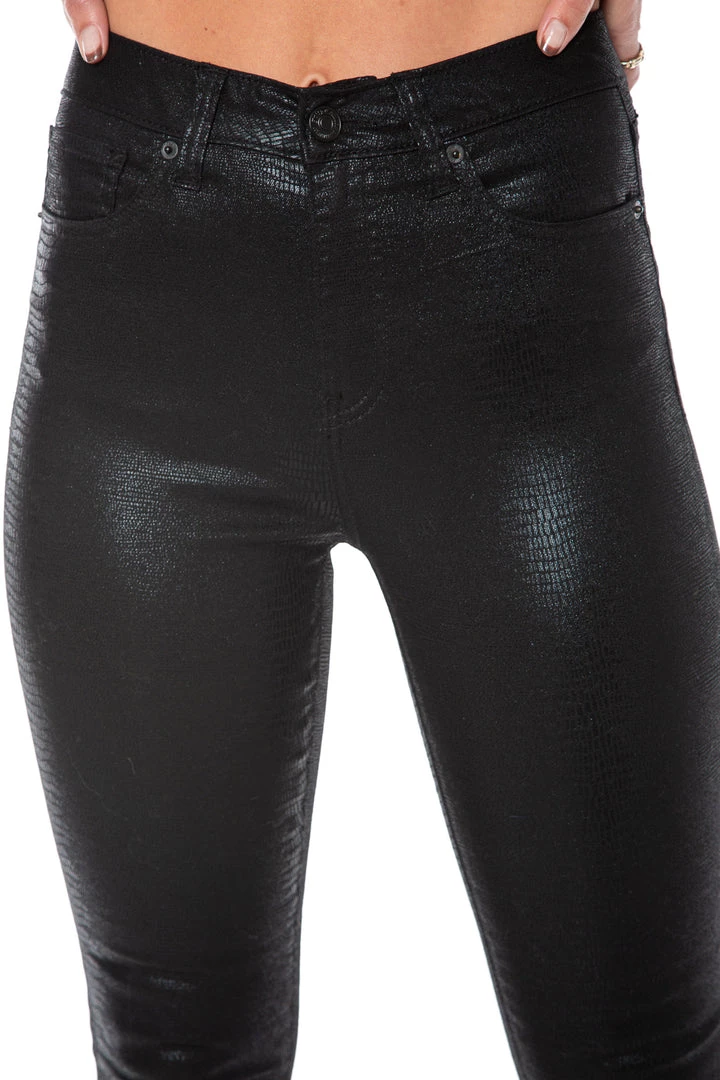 Channel your exotic side with our standout signature snakeskin coated jeans. Our high-rise zipper fly is flattering on every woman, while our ultra-lightweight coated snakeskin sets you apart from the crowd.