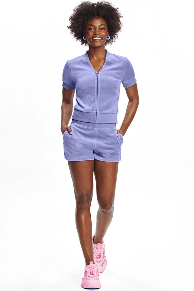 Get summer ready with our cotton velour booty shorts. Topped with an elastic waistband and a diamante logo at the back.