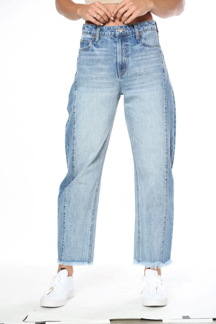 Yeehaw! Ride into the night in our barrel fit jean with a vintage rigid fabric. This leg shape is cropped and slightly bowed for a super fashion-forward fit.