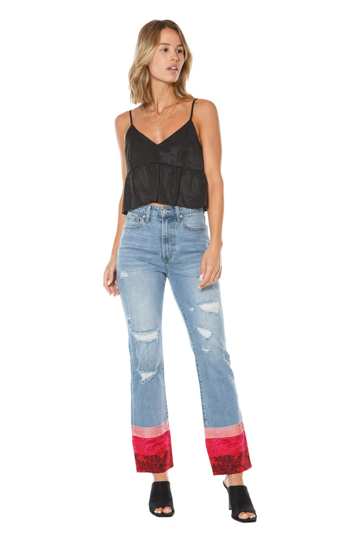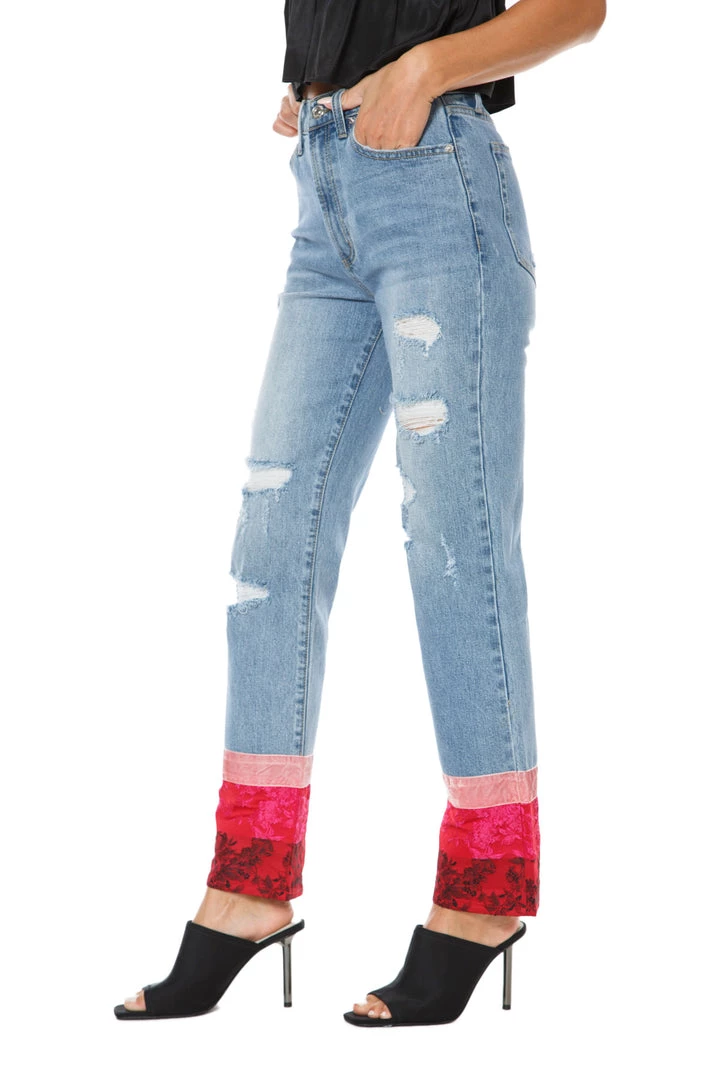 This classic straight leg jean is perfect for dressing up for a casual date or dressing down for a chill weekend. The comfort fabric has a slight stretch to keep you comfortable while still maintaining that authentic denim look. We added a pop of floral fabric for extra fun!