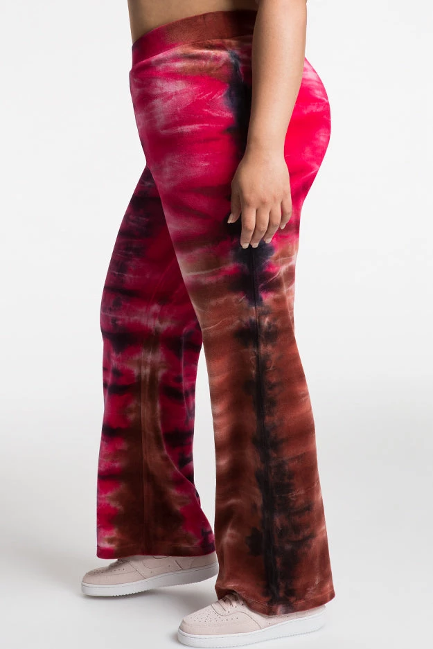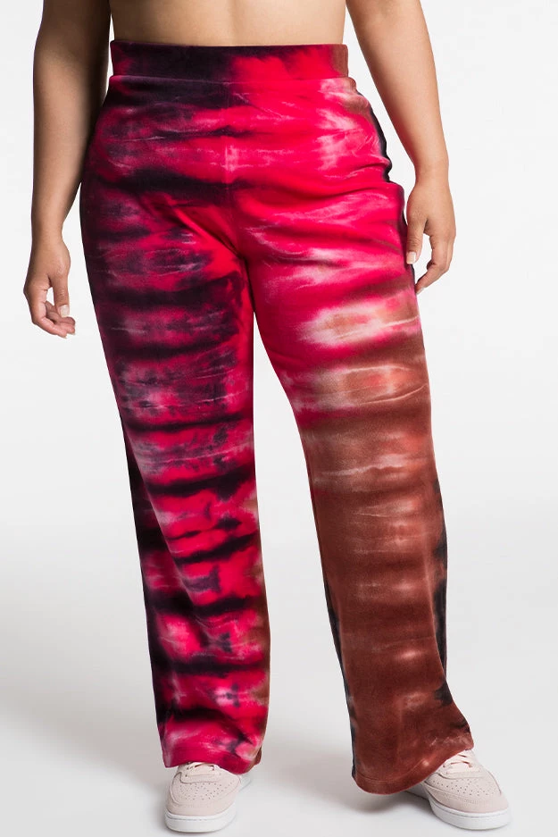 Whether you choose to pair with our matching track jacket or sport solo, our original luxe velour track pant in a sunset-inspired pattern will go the distance.Â