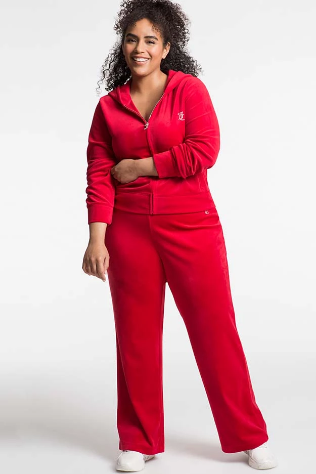 Whether you choose to pair with our matching track jacket or separates, our original luxe velour track pant will go the distance. Details include dyed to match embroidered logo, a ribbed elastic waistband and a JC bling monogram on the hip.