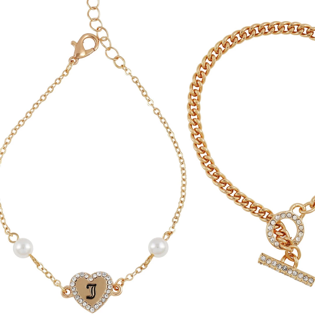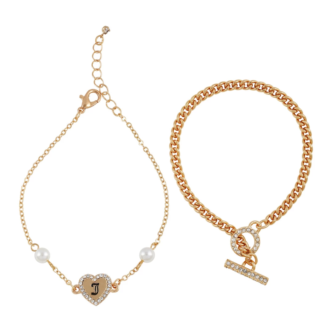 Elegance and class radiate from this set of two bracelets which feature glass stones and perals. They are members of the Queen Bee collection.