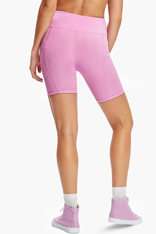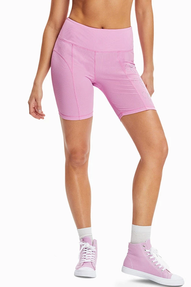 As versatile as our essential track pants, the bike-short has emerged as one of the season’s must-have foundational pieces. A rhinestone script Juicy logo treatment adds to the original Juicy touch.