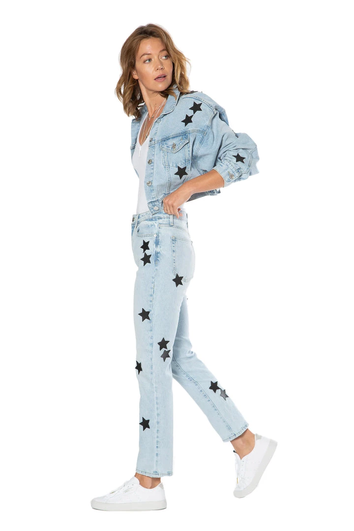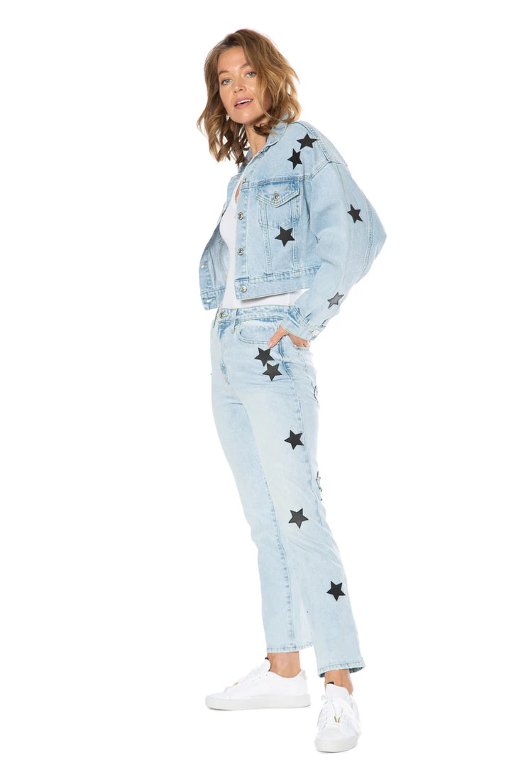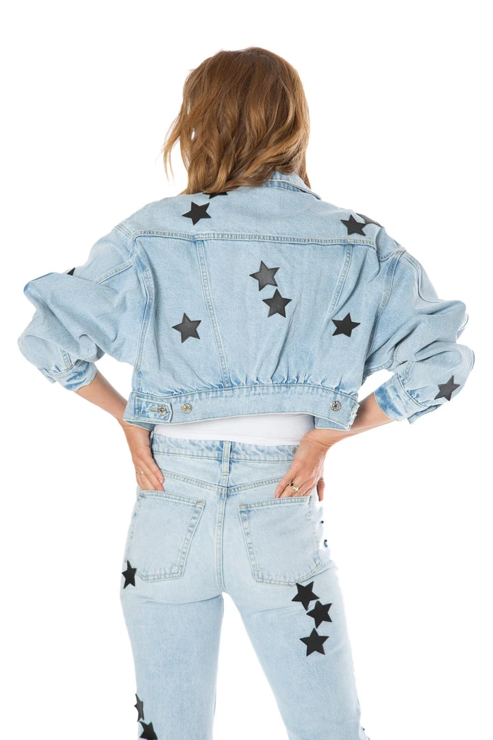 Make a bold statement with these faux leather star appliques! Pair back to the matching jean for a full-on star-studded moment.