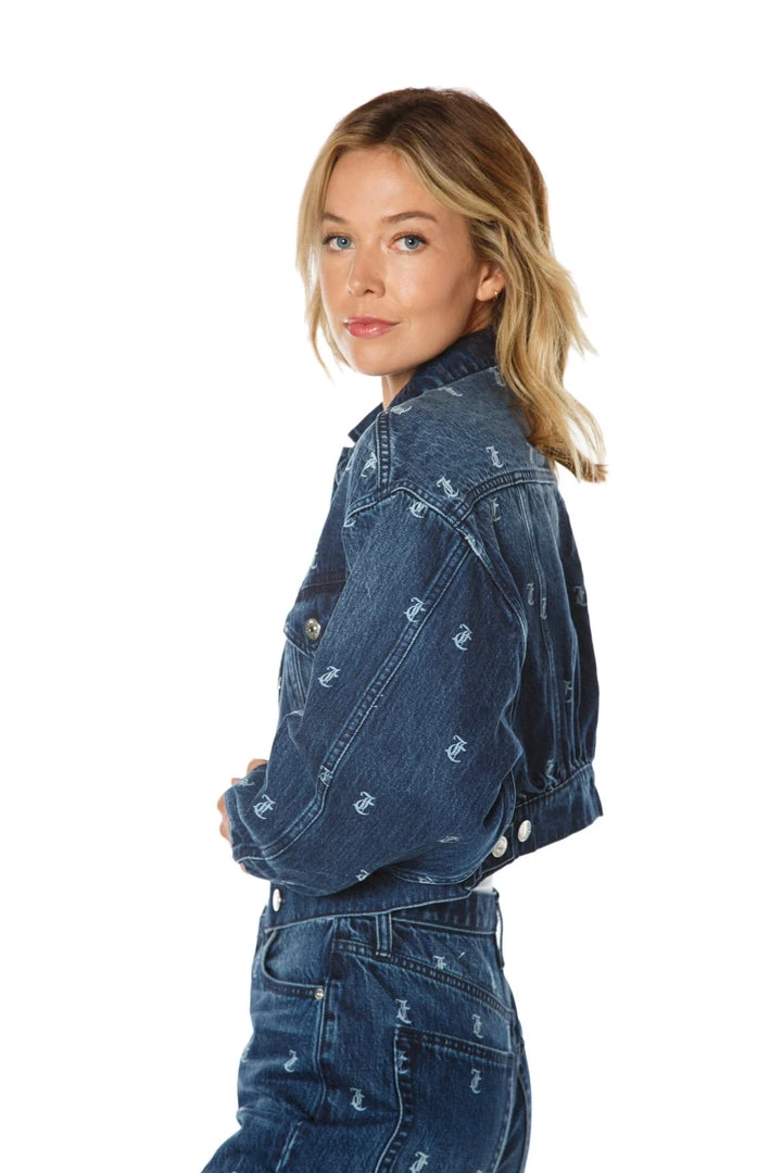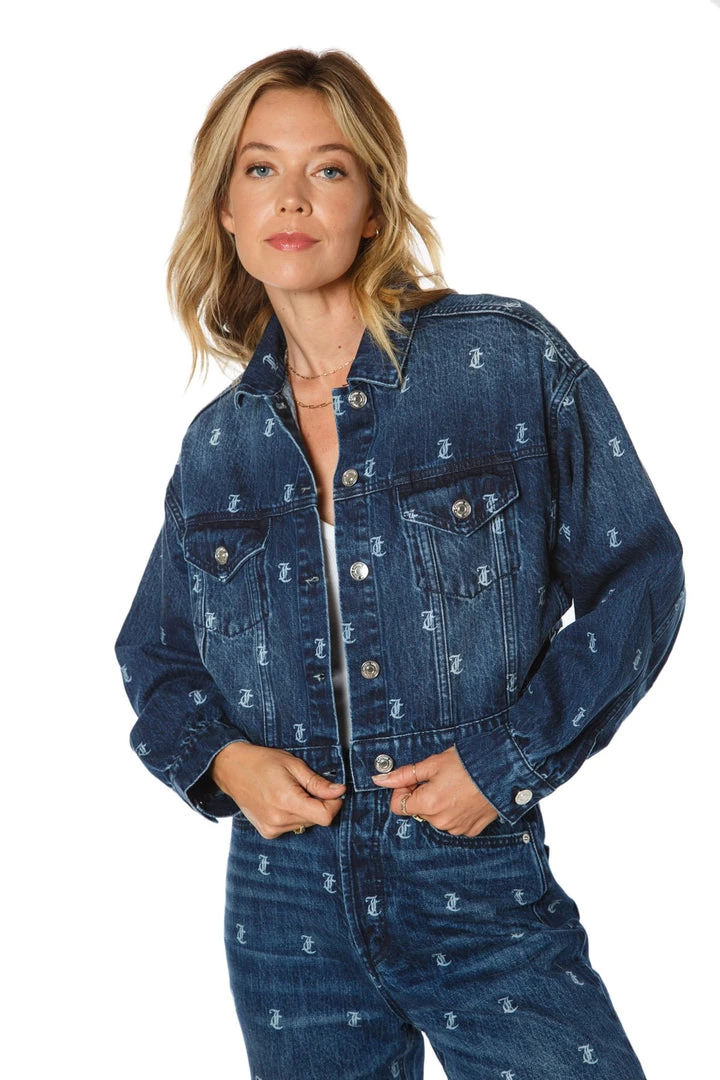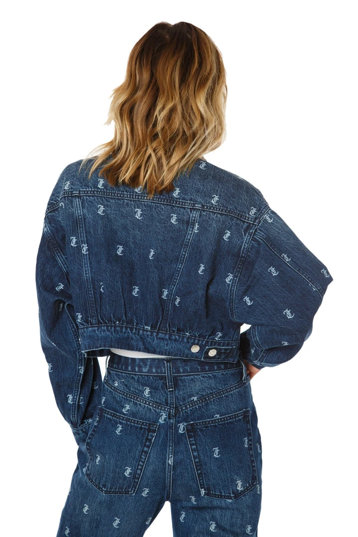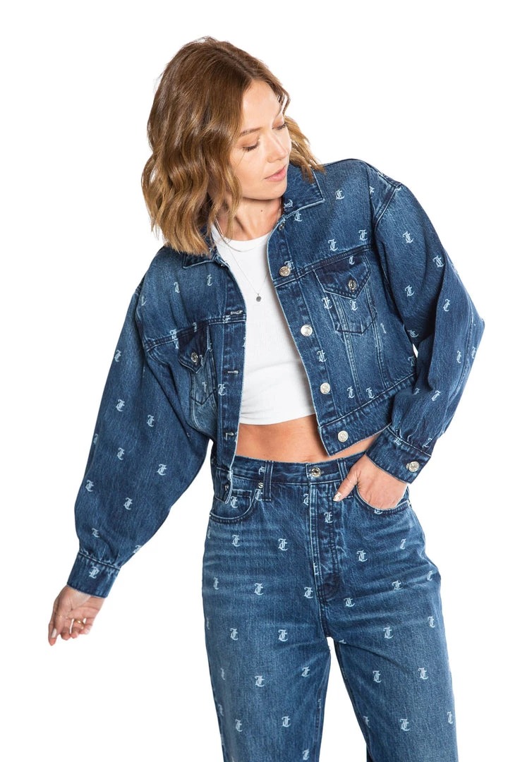 We combined our classic monogram print with our signature Juicy jacket to create one perfect denim trucker. Let the print speak for itself as you remain comfortable in our loose-fitting slouchy style. Perfect your look with the matching jeans!