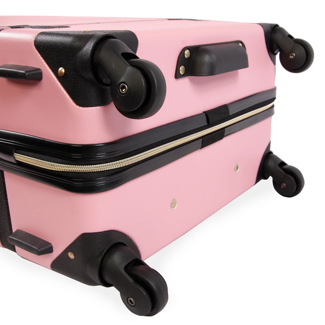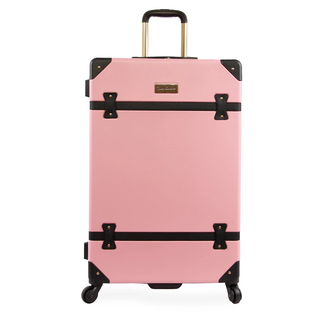 Enhance your travel game with the fabulous Sadie 3-pc set by Juicy Couture. Dual-spinner wheels, a retractable push-button handle, and a durable, hard side exterior. Ideal mix of glamour and fashion, for stylish travelers looking to make a fashion statement. Luggage set includes a 21″, 25″ and 30″ suitcase to fit all your travel needs.