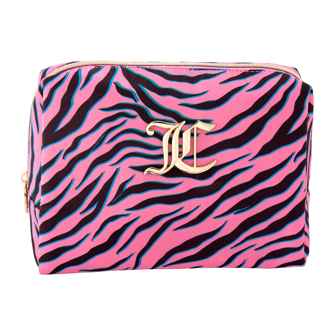 Awaken your animal instincts with this Juicy wedge shape cosmetic bag in abstract zebra print.